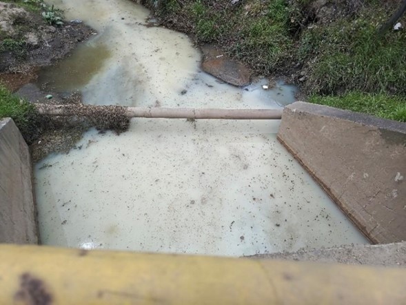 Durante la inspección, los funcionarios hallaron en flagrancia una descarga de aguas contaminadas aparentemente derivadas de procesos de producción de lácteos directamente sobre una quebrada. Además del impacto evidente sobre el recurso hídrico, se reportaron olores ofensivos en la zona de influencia, lo que refuerza la gravedad de la infracción ambiental.